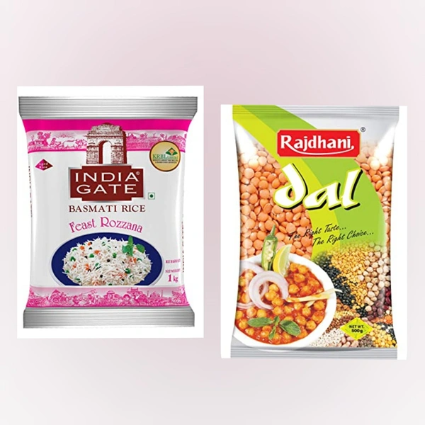 India Gate Basmati Rozana Rice + Rajdhani Masoor Malka